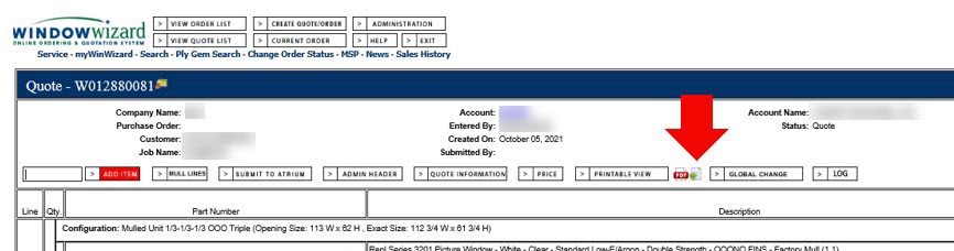 Atrium can activate a "quote export" feature for Window Wizard. This allows a user to download a text file for processing in SaberisConnect.
