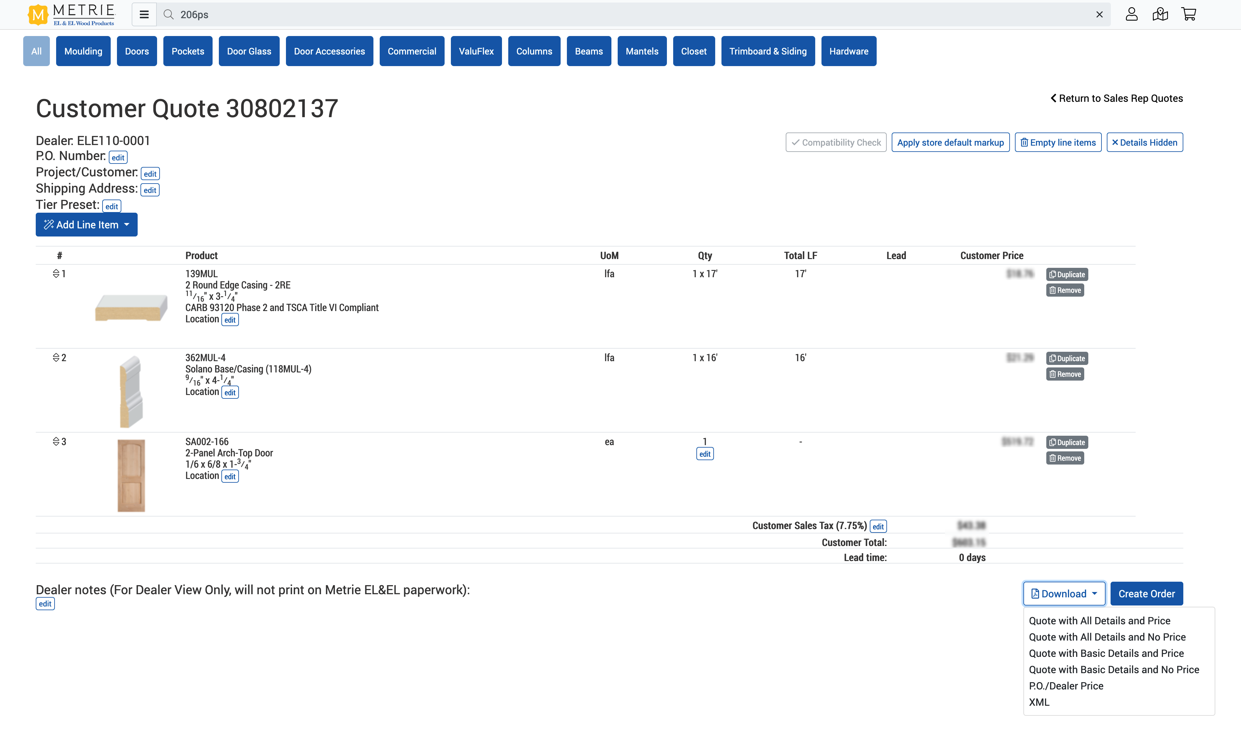 Open the quote and click on the "Download" button at the bottom right of the screen.