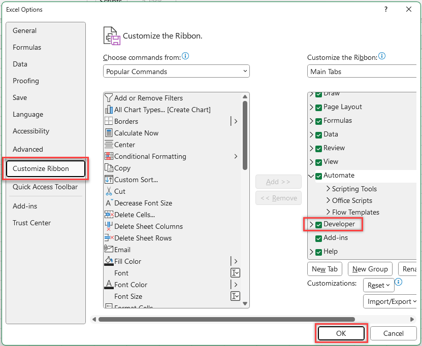 Select the Developer Tab.