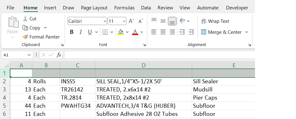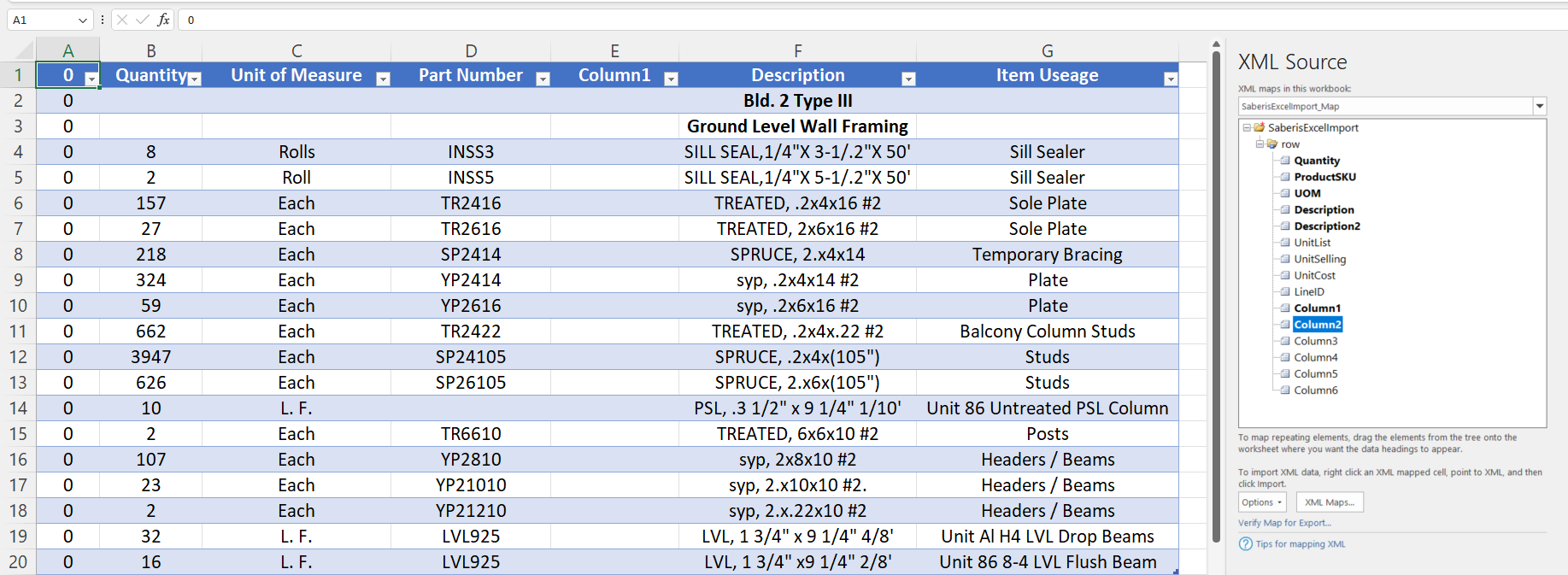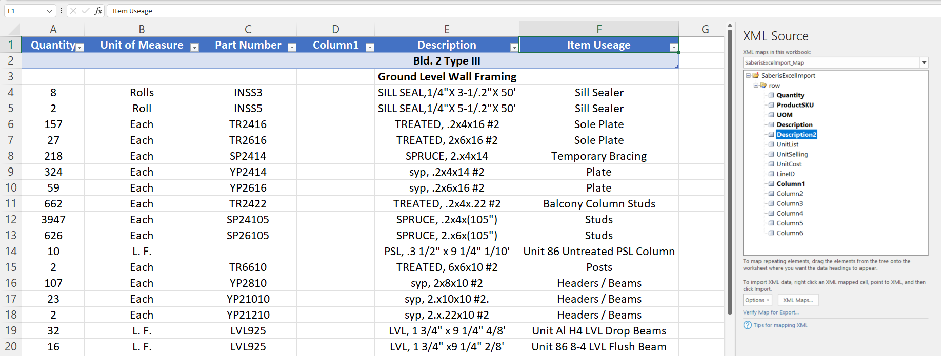 Many estimating programs store or export data in Excel spreadsheets, or you may have your own Excel estimating Worksheet setup. The import solution is mapping the Saberis Excel Template to the Excel Spreadsheet. Once you understand the process this is a 30 second task.