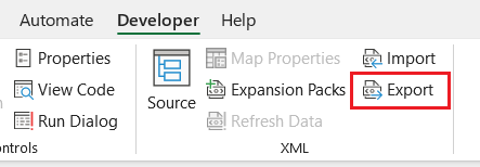 The final step in Excel is to export the data under the Developer Tab. Save it to your folder to upload it to SaberisConnect.