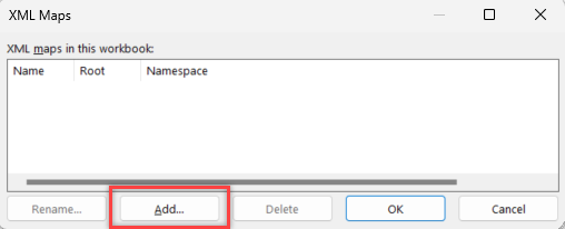 Click on "Add" in the XML Maps window.