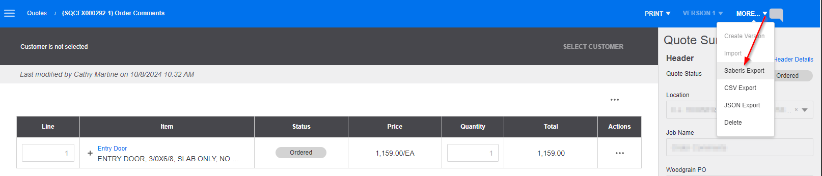 • Open a quote and click on the More command.