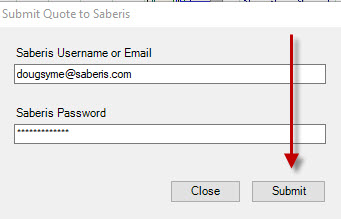 The first time you use the Stealth App you will be required to enter your SaberisConnect login information, which will be saved in the App. Then click on Submit.