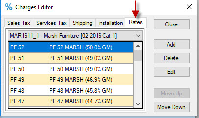 - Select the correct rate record. The records shown above are quite often included by the vendor in their catalogs.