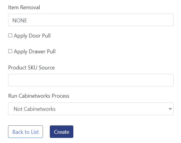 To make this work, the catalog must be programmed to generate the SKU. Contact Saberis for information on how to do this. - Please contact Saberis Support for more information regarding the Run Cabinetworks Process field.