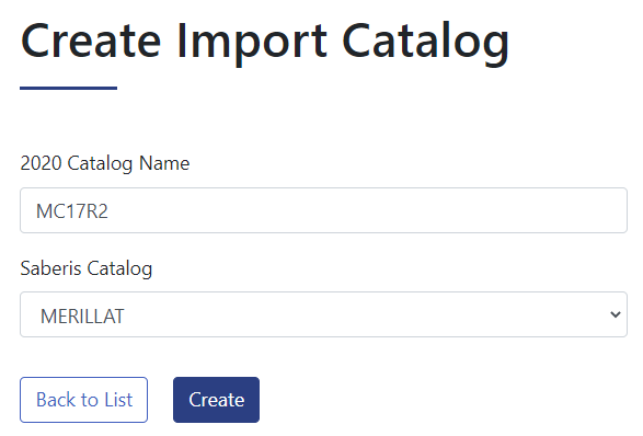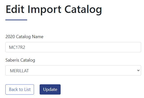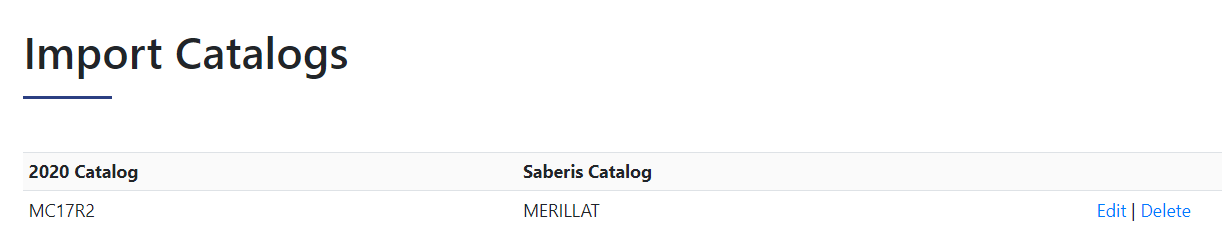 After the Saberis Catalogs have been created, the 2020 Catalogs must be mapped to them.