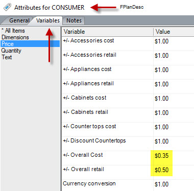 If you need to have 3 or 4 decimal places for cost factors, then you must do a "work around". Set the overall factor to 33.33 and set the cost factors for the cabinets and accessories to 0.01. 2020 will multipy the 33.33 by 0.01 to give you .3333. When the factors have to be changed, only the overall cost factors needs to be edited.