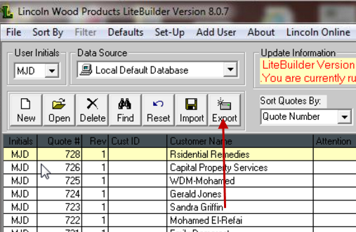 Highlight the order or quote in the Lincoln Module. Click on Export.
