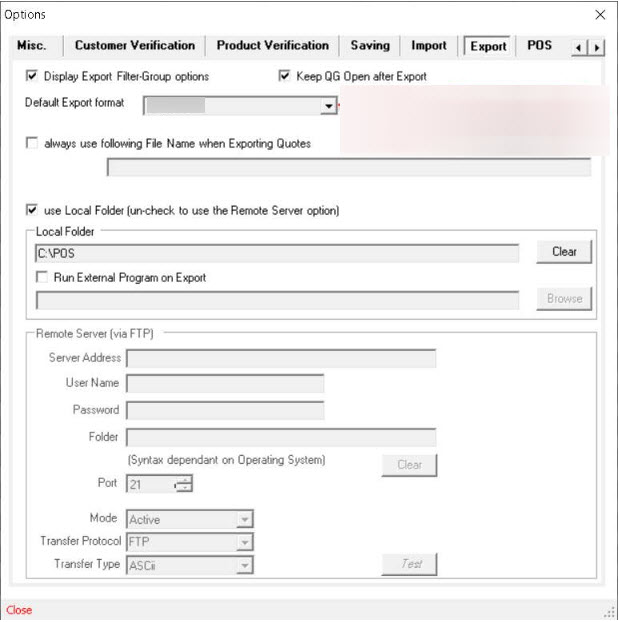 The first thing the user has to do to use QG to link to SaberisConnect is setup the Export Options.