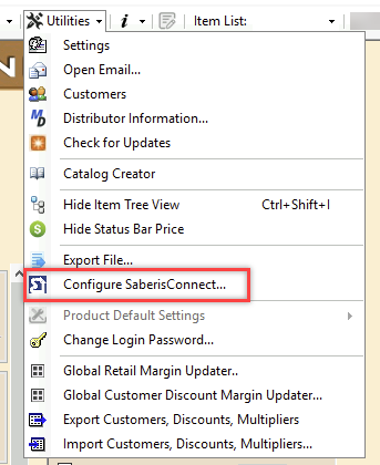 If this is the first time using a vendor's Millwork Development system, select the Utilities Menu command and then select "Configure SaberisConnect".