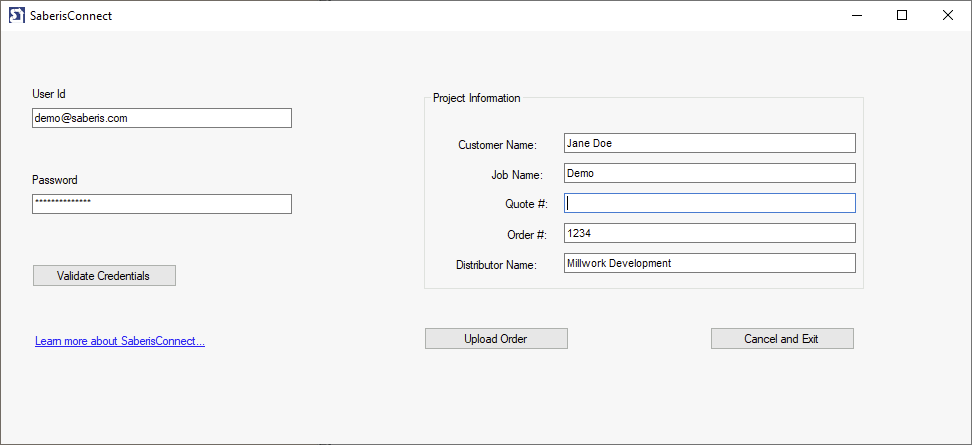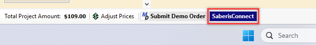 The second time you use the vendor's Millwork Development system, you can use the SaberisConnect button on the bottom menu.