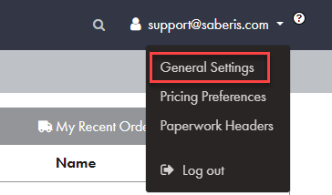 To activate the Saberis export process, first select "General Settings" from your user profile.