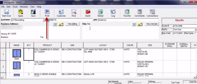 • Open Viwinquote and open a quote. Then click on the Print icon.