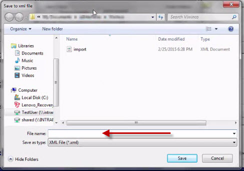 • In the Save to XML file window, name the file. Then save the file to the required folder.