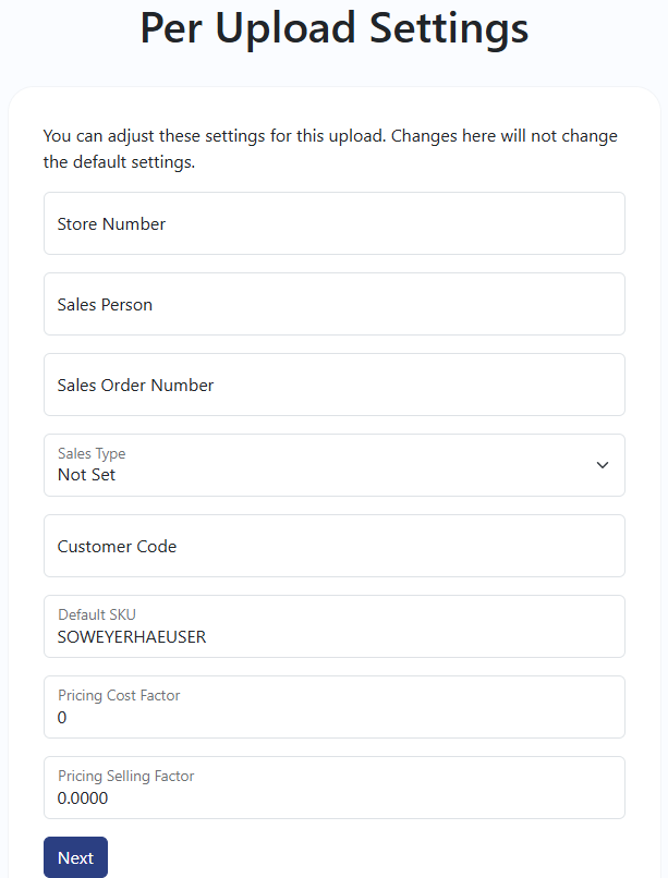 The last step is to change any Cost or Selling factor (multiplier) settings for the current upload. Most Vendor Modules require no changes.