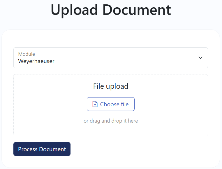 Click on the "Process Document" button to start the upload and processing.