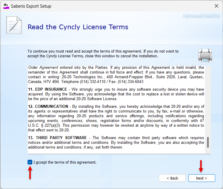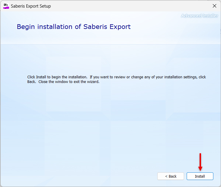 The Saberis Export Set-up Wizard will appear. Follow the instructions below.